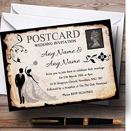 Amazon Com Black White Vintage Rustic Postcard Personalized Wedding Invitations Postcard Style