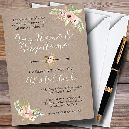Rustic Vintage Watercolour Peach Floral Personalised Wedding Wedding Invitations Postcard Style