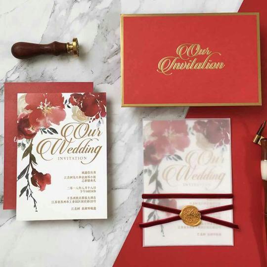 Red And Gold Handmade Red Peony Wedding Invitationmomental Designs Wedding Invitations Red And Gold