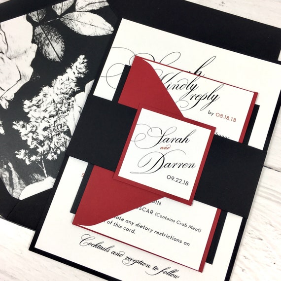 Pocketfold Wedding Invitation Black Red Ivory White Wedding Invita The Extra Detail Wedding Invitations Red White And Black
