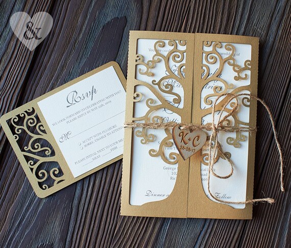 Elegant Tree Laser Cut Wedding Invitations In Brown Colour With Tag Wedding Invitations Tree