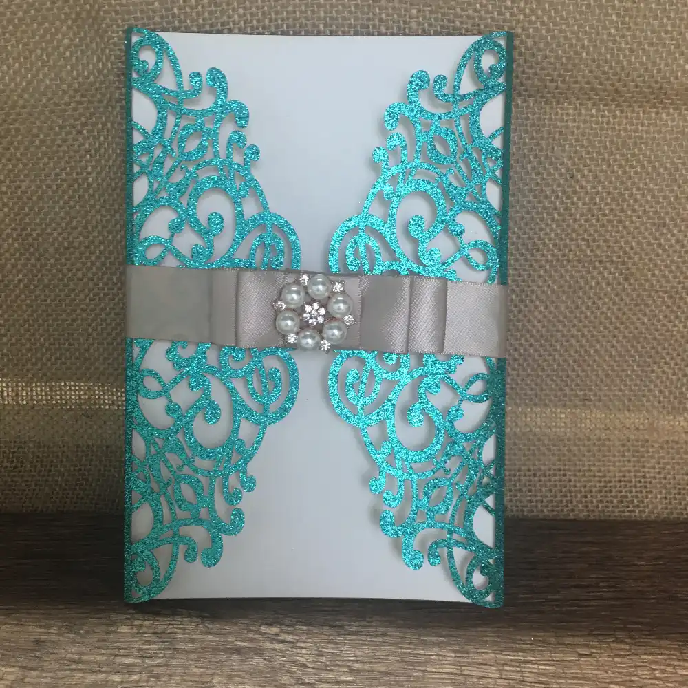 Hot Sell New Arrival Unique Laser Cut Glitter Paper Wedding Invitation Card Mint Green Color With Personalize Printing Sample Aliexpress Wedding Invitations Turquoise And Silver