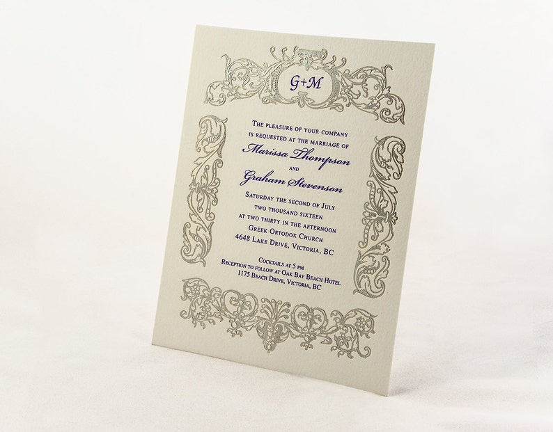 Blue Wedding Invitation Suite Monogrammed Letterpress Wedding Card Wedding Invitations Victoria Bc classicstationers.patternbyetsy.com