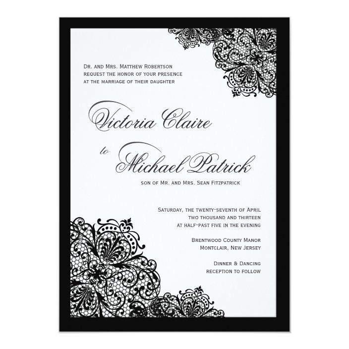 Fancy Black Lace Script Wedding Invitations Zazzle Com Wedding Invitations Victoria