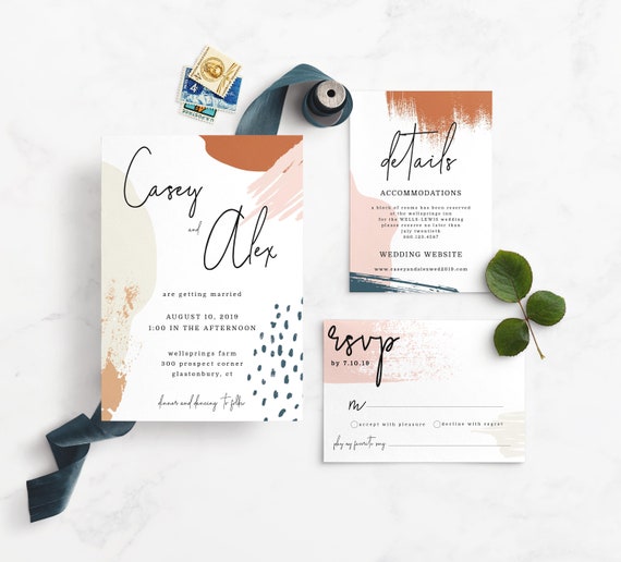 Natural Themed Wedding Invitation Set With Rsvp Card Rsvp Wedding Invitations With Response Cards Included