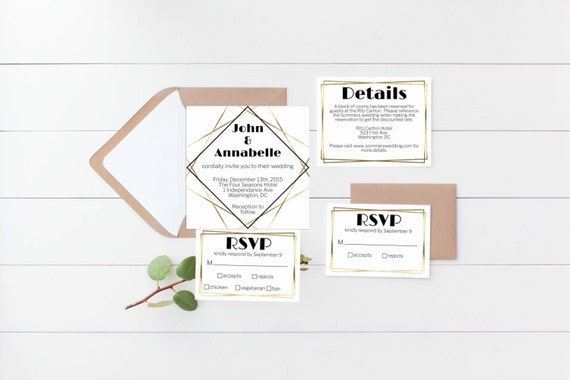 Printable Digital Download Wedding Invitations Art Deco Etsy Wedding Invitations With Rsvp Cards