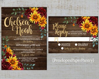 Rustic Sunflower Wedding Invitation Etsy Wedding Invitations With Sunflower Design
