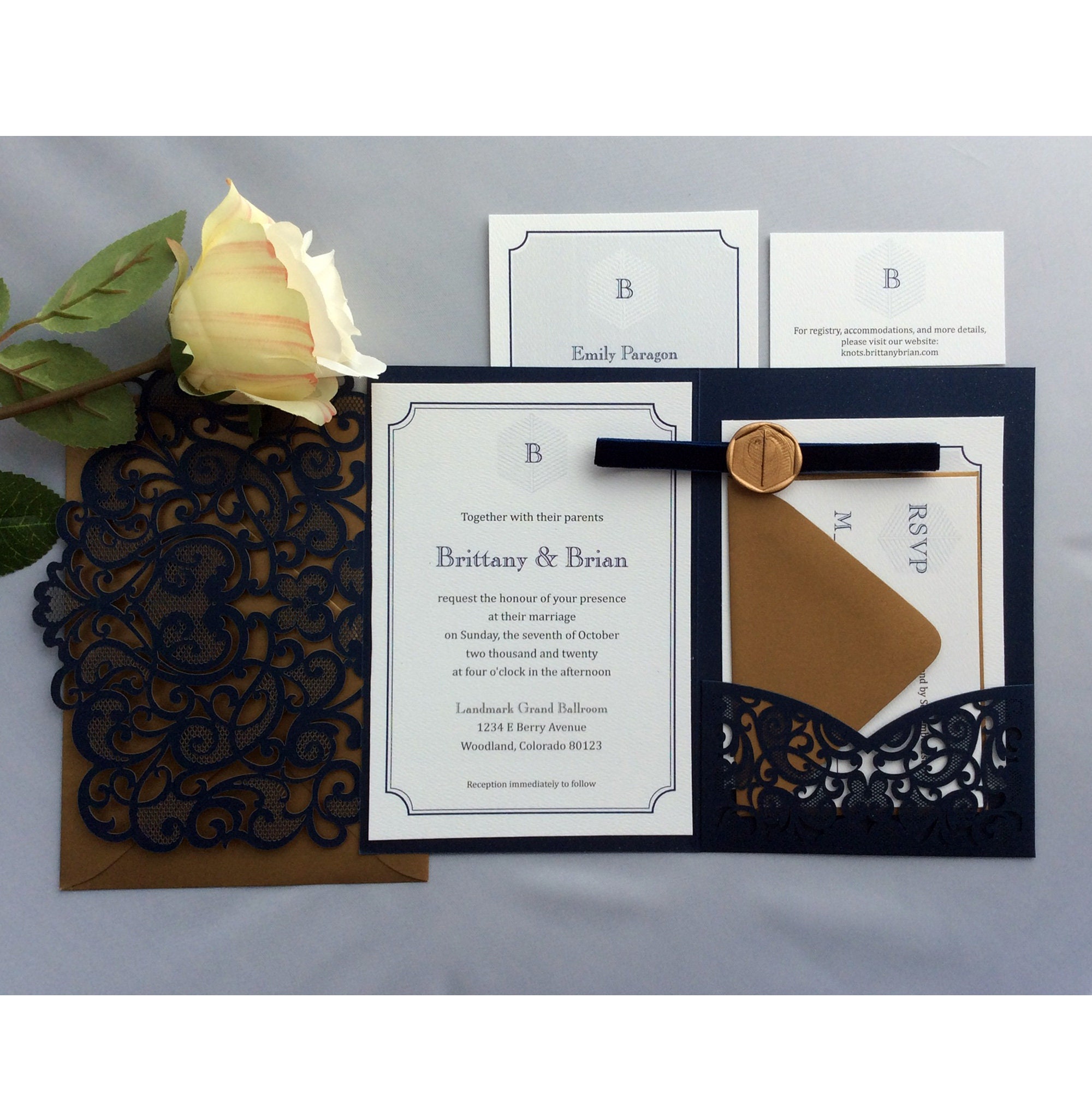 Mounted Pocket Folder Wedding Invitation Rsvp Letterpress Wedding Invite Folders