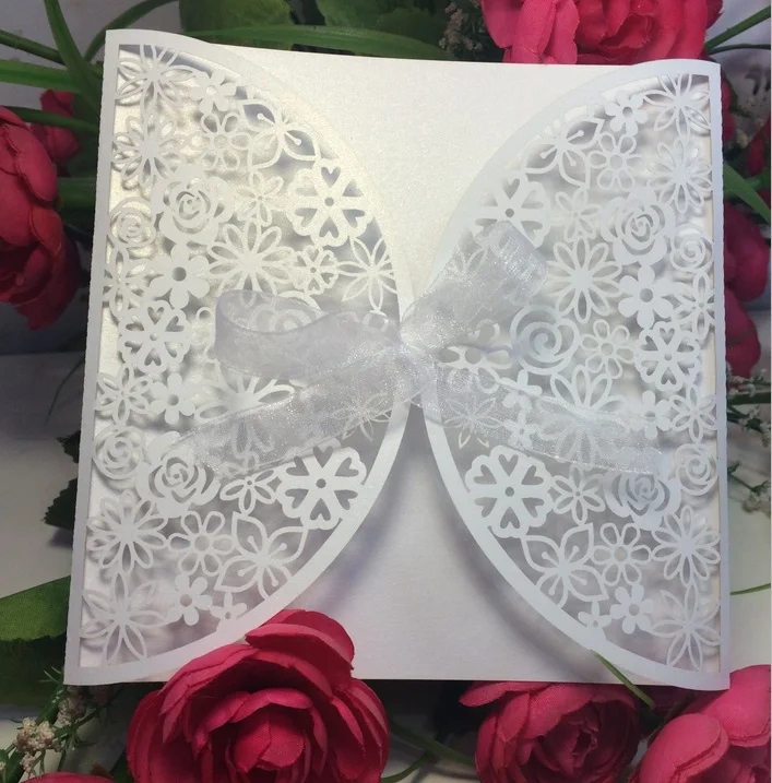 Free Shipping 10pcs Unique White Square Hollow Flower Making Party Wedding Invite Map Creator