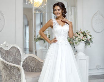 Women Wedding Vintage Hollow Out Lace Asymmetry Strap V Neck Lace Wedding Line Up Dresses