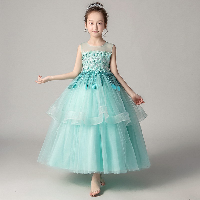 Kids Girls Active Sweet Party Holiday Patchwork Sleeveless Wedding Maxi Dresses For Girls