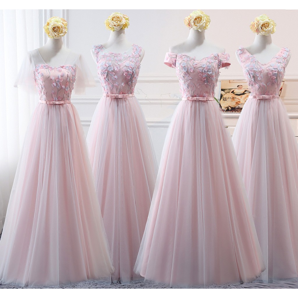 Korean Sweet Pink Lace Women Long Dresses Bridesmaid Dress Shopee Singapore Wedding Party Wear Long Dresses