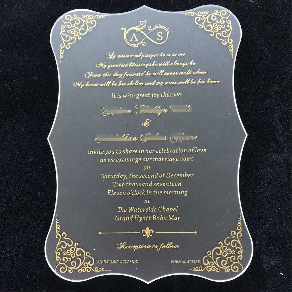 Personalised 50pcs Per Lot 5x7inch Frosted Acrylic Wedding Wedding Prayer For Invitation