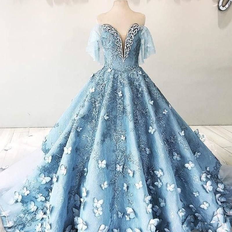 Wedding Dresses Butterfly Fashion Dresses Wedding Princess Blue Lace Butterfly Wedding Dress