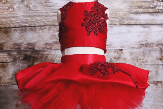 Elegant 2 Piece Dress Wedding Style Tutu Dress Girls Red Etsy Wedding Red Dress For Girls