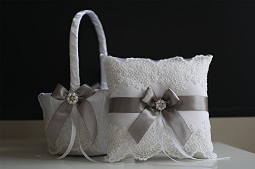Alex Emotions White Gray Flower Girl Basket And Ring Bearer Pillow Set Lace Collection Gray Wedding Basket Gray Ring Pillo Walmart Canada Wedding Ring Bearer Pillow Sets