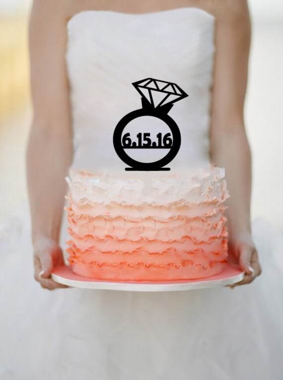 Engagement Ring Cake Topper Monogram Cake Topper Personalized Etsy Wedding Ring Cake Toppers