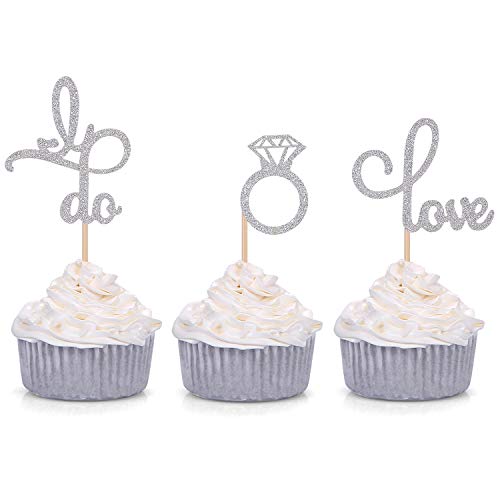 Set Of 24 Silver Glitter Love Diamond Ring I Do Cupcake Toppers Wedding Ring Cake Toppers