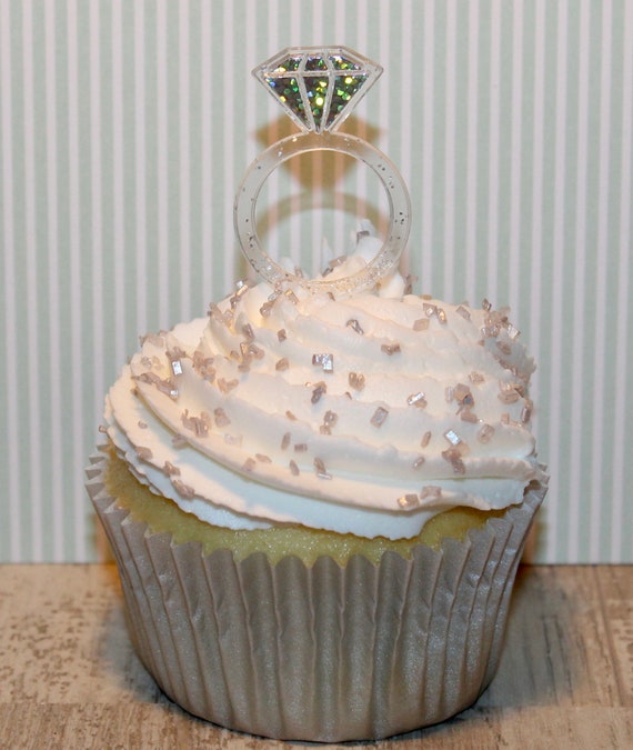 10pc Bag Sliver Glitter Diamond Ring Cupcake Toppers Wedding Cake Wedding Ring Cupcake Toppers