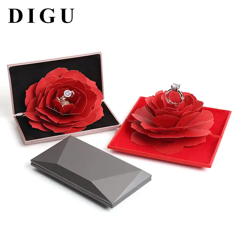 Digu Custom Personality Rose Wedding Diamond Ring Box Jewelry Wedding Ring Display Case