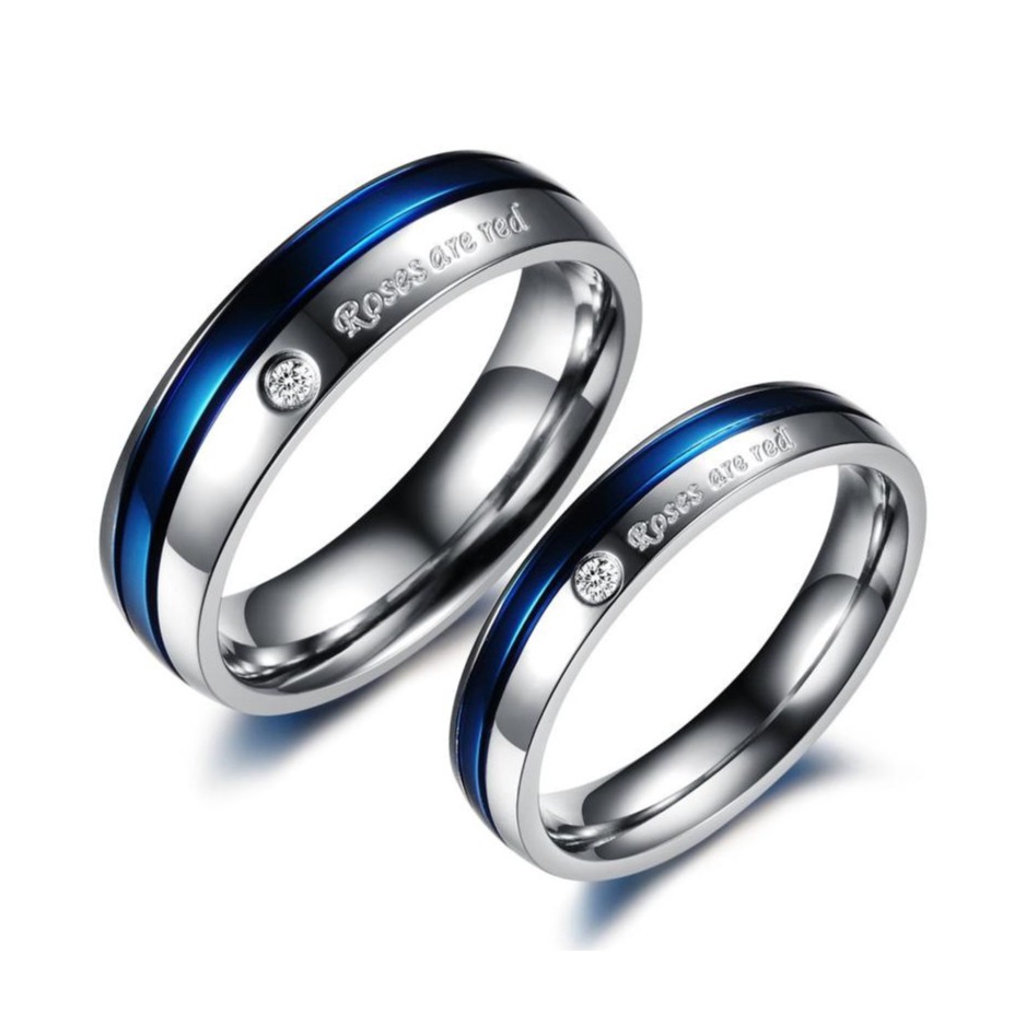 Wedding Ring Jewelry White Blue Diamonds Titanium Steel Rings Wedding Ring For Couple