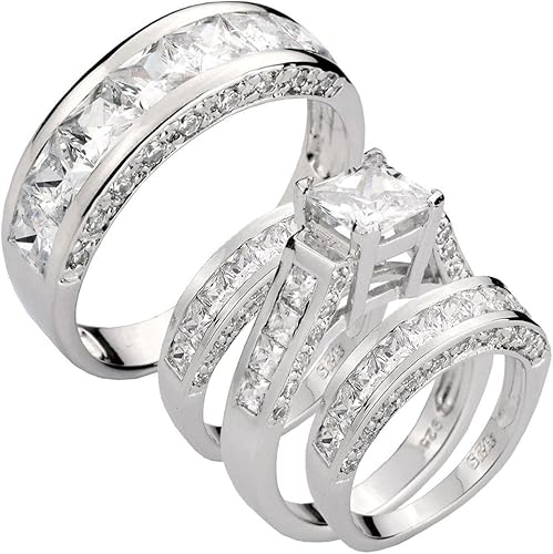 Amazon Com 4 Pcs 4 8ct Princess Cubic Zirconia Bride And Groom Wedding Ring For Groom
