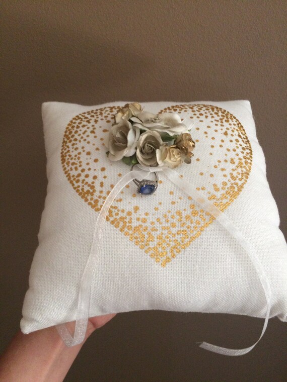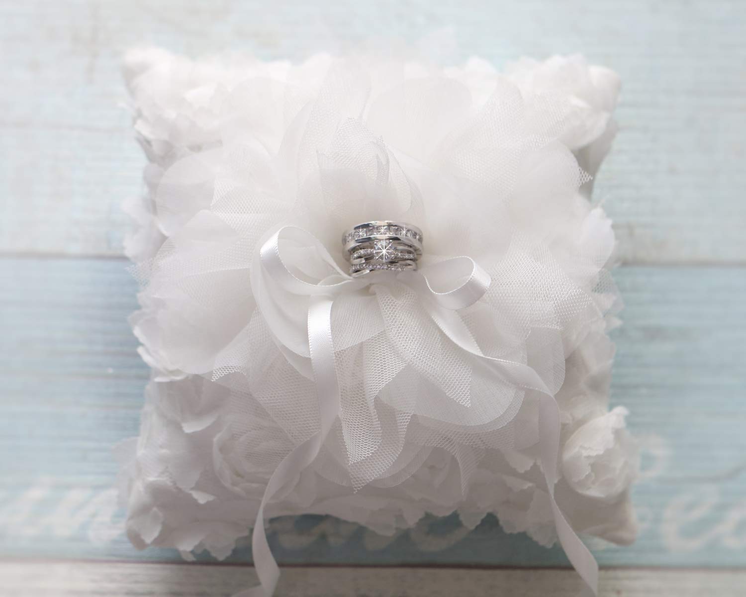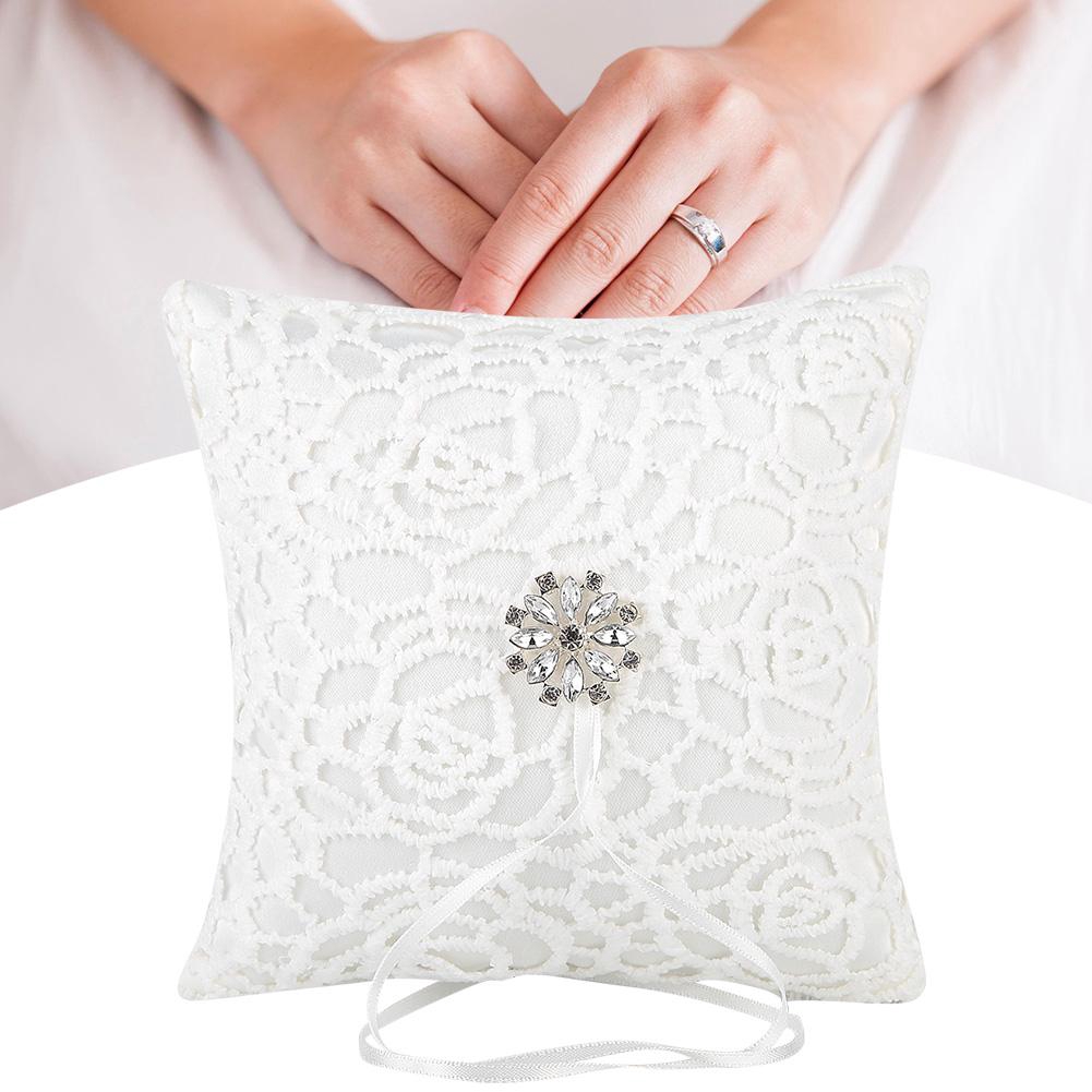 Romanticshopssss Bearer Ring Pillow With Rhinestones Wedding White Wedding Ring Holder Pillow