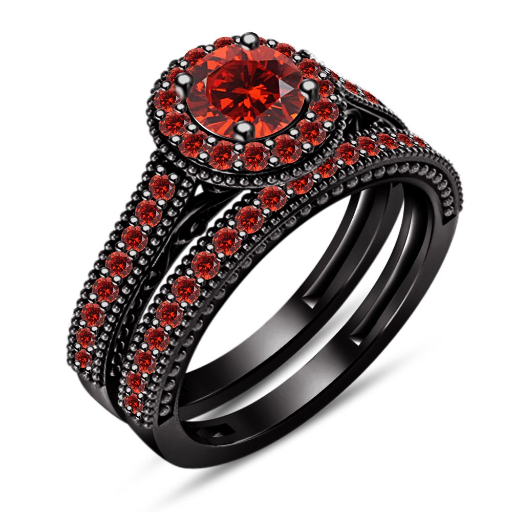 2 Carat Round Diamond Antique Wedding Ring Set In White Gold For Wedding Ring Set For Her