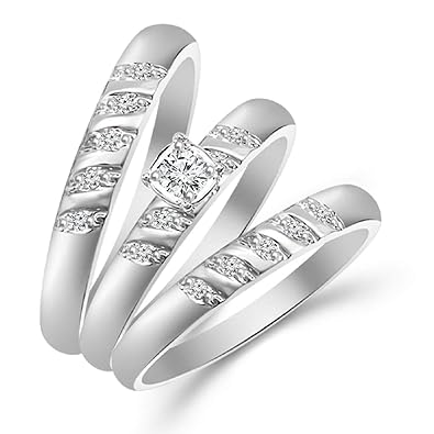 Diamond Cross Wedding Ring Set In White Gold 1382set Wedding Ring Sets For Bride And Groom White Gold