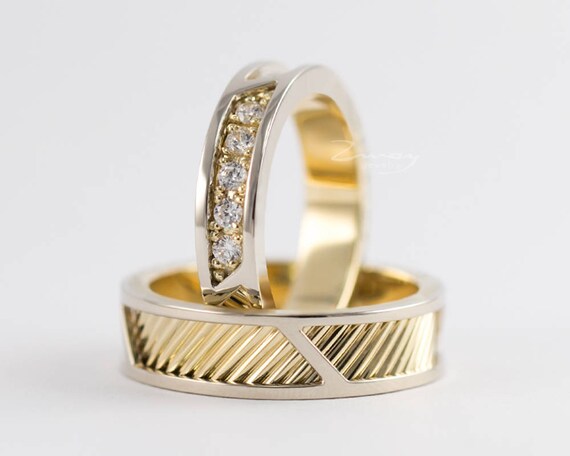 His Her Rings Set Gold Couple Rings Set Bridal Rings Set Wedding Ring Sets For Couples