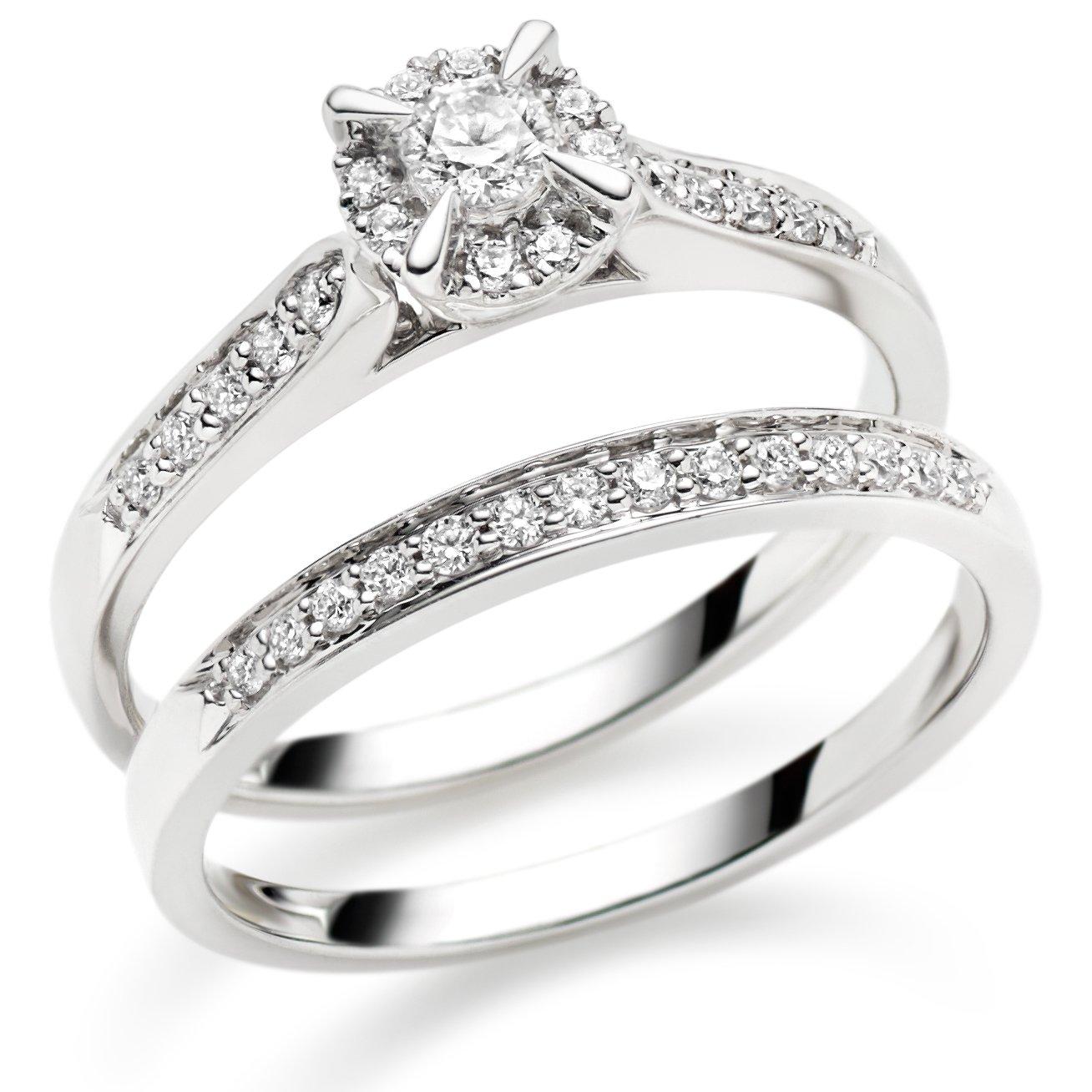 18ct White Gold Diamond Halo Ring Bridal Set 0000215 Wedding Ring Sets Pictures