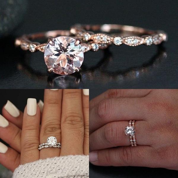 Moissanite White Sapphire 18 K Rose Gold Filled Engagement Wedding Ring Sets Under 100
