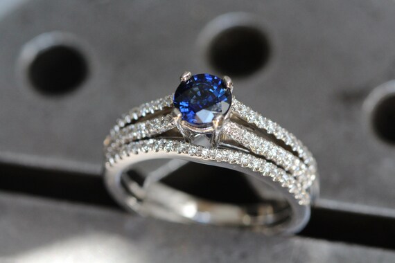 Milgrain Diamond Sapphire Engagement Ring Bridal Set 18k Gold 7x5mm Wedding Ring Sets With Sapphires