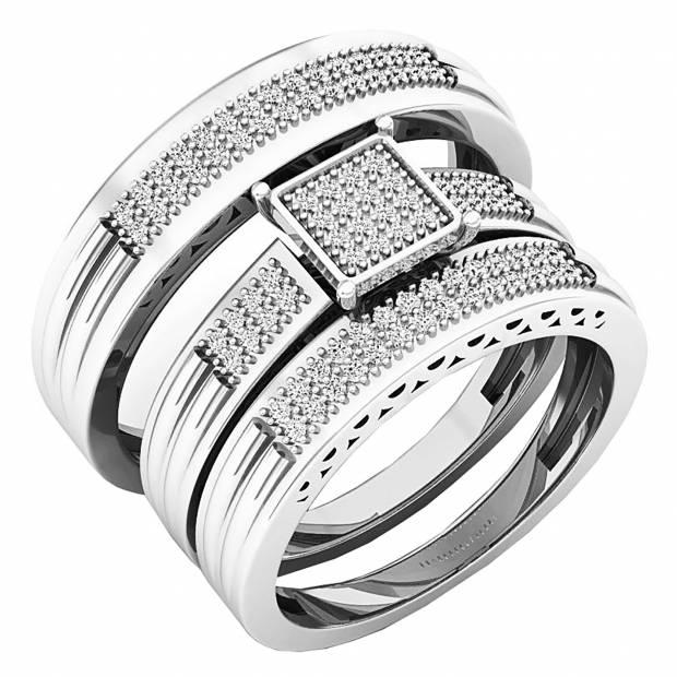 Buy 0 24 Carat Ctw 10k White Gold White Diamond Men S Wedding Ring Trio Set
