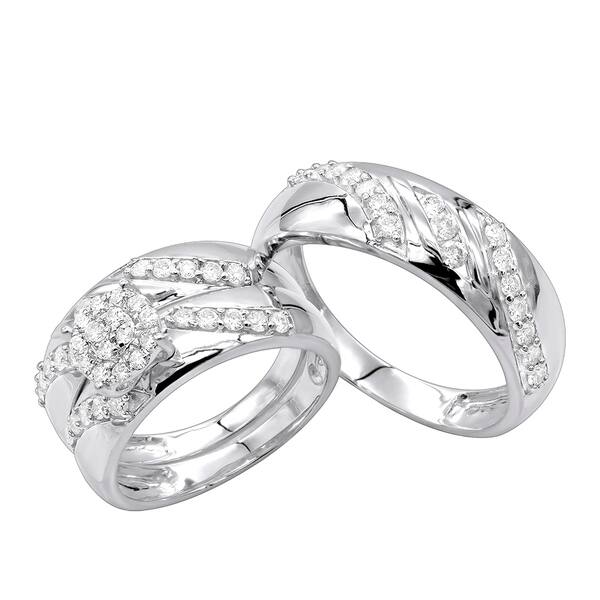 Shop 10k Gold Diamond Engagement Bridal Trio Wedding Ring Set 0 8 Wedding Ring Trios Cheap