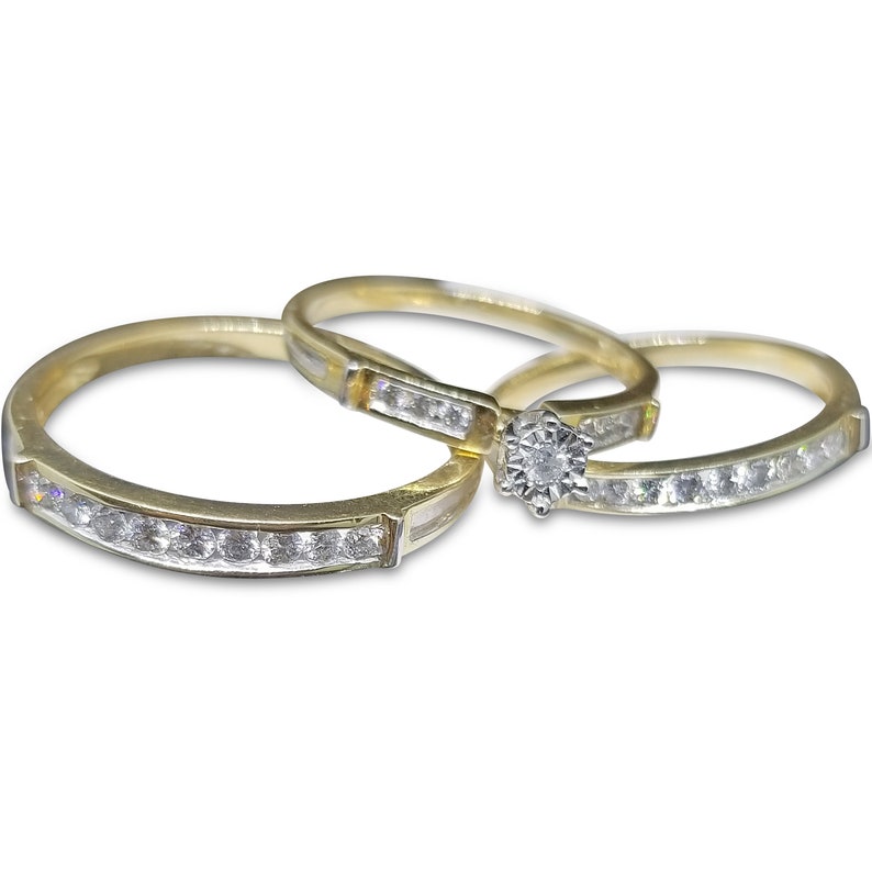 Princess Cut Diamond Trio Matching Ring For Him And Her In 14k Yellow Gold Fascinating Diamonds Wedding Ring Trios White Gold