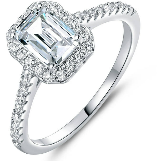 Halo2cloud Halo Emerald 18kt White Gold Plated Engagement Ring Wedding Ring Walmart