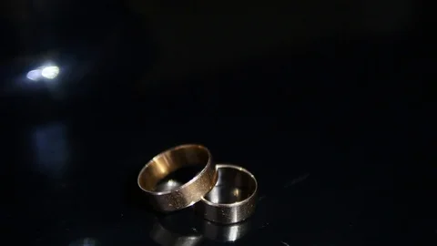 Wedding Rings Black Background Shining With Light Jewelry Close Up Wedding Rings Black Background