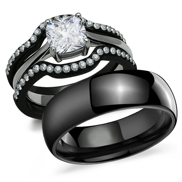 Bellux Style His And Hers Matching Wedding Rings Women S Black Wedding Rings For Sale At Walmart