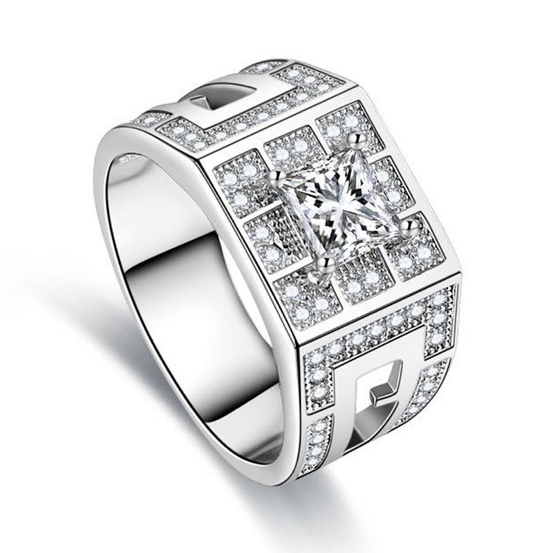 Luxury Men Platinum Plated Silver Diamond Ring Aaa Cubic Zircon Rings Male Shopee Singapore Wedding Rings Men Platinum