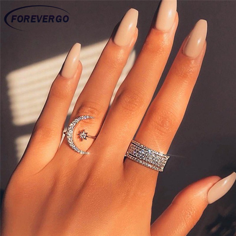 Re Gold Women S Diamond Moon And Stars Ring Wedding Rings Jewelry Wedding Rings Of The Stars