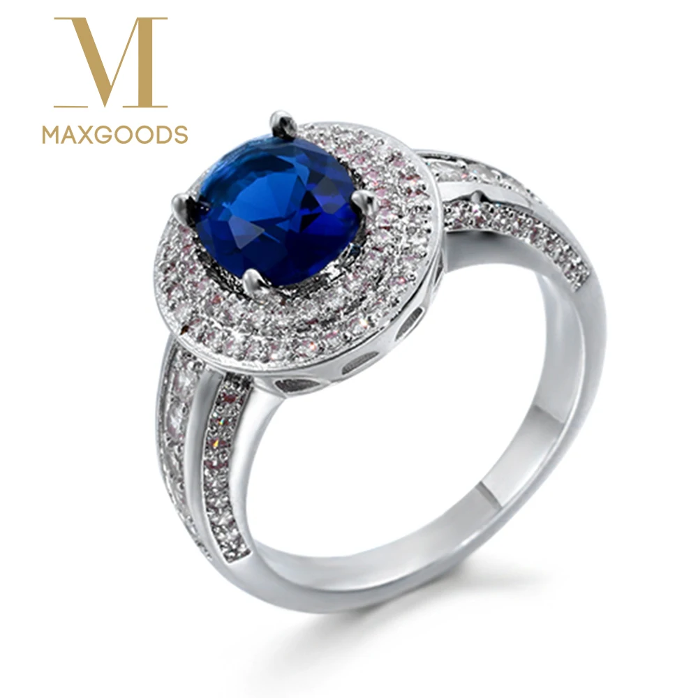 Creative Blue Crystal Ring Princess Crown Engagement Wedding Rings Wedding Rings Princess