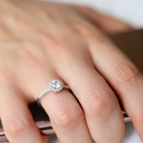 0 69 Carat Classic Halo Engagement Ring Round Cut Simulated Etsy Wedding Rings Round Cut