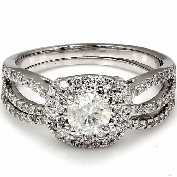 Shop Pompeii3 10k White Gold 1 Ct Tdw Diamond Cushion Halo Wedding Rings Set For Sale