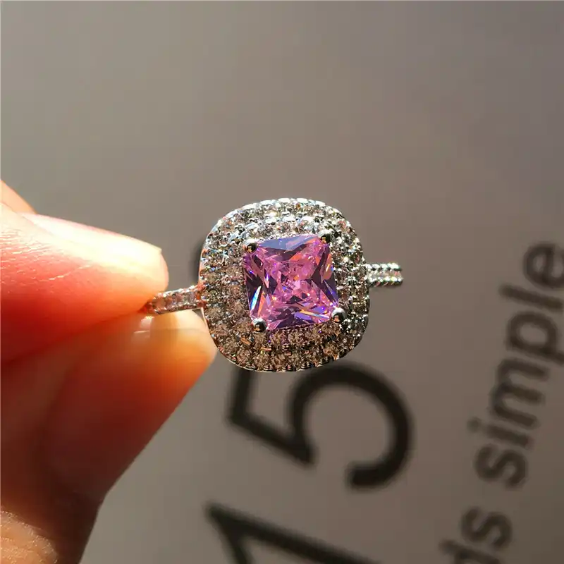Luxury Female Pink Purple Purple Stone Ring Promise Silver Square Wedding Rings Under 150