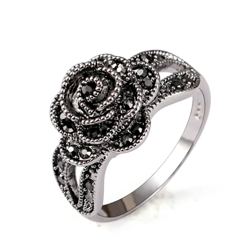 Rhinestone Black Flower Finger Ring For Women Brand Jewelry Vintage Style Size 7 9 Finger Ring Brand Rings For Wedding Rings Vintage Inspired