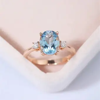 Fashionable Natural Aquamarine Ring Platinum Plated Inlay Zircon Wedding Rings With Aquamarine