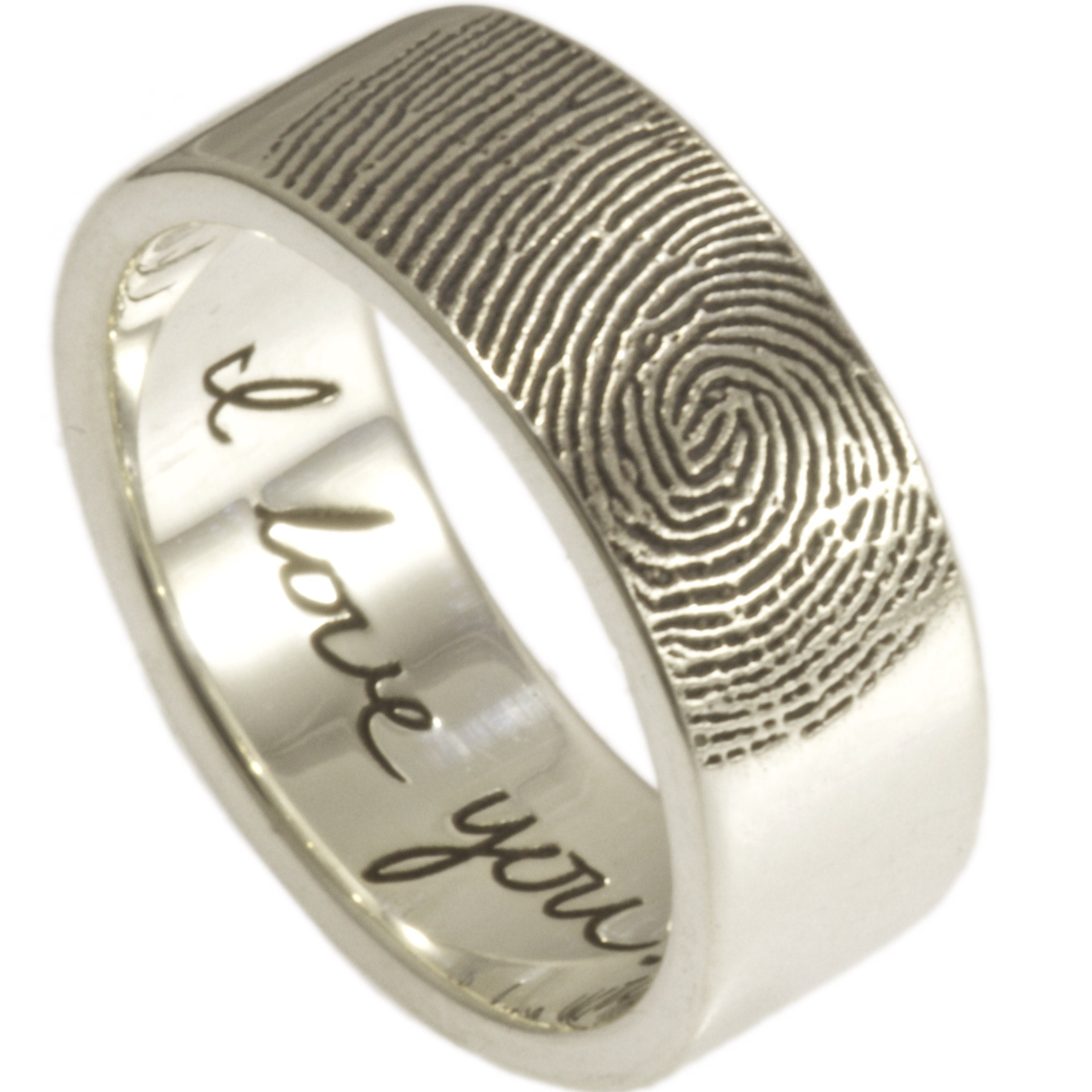 My Wedding Ring Has My Fiancee S Ring Fingerprint On It Pics Wedding Rings With Fingerprints