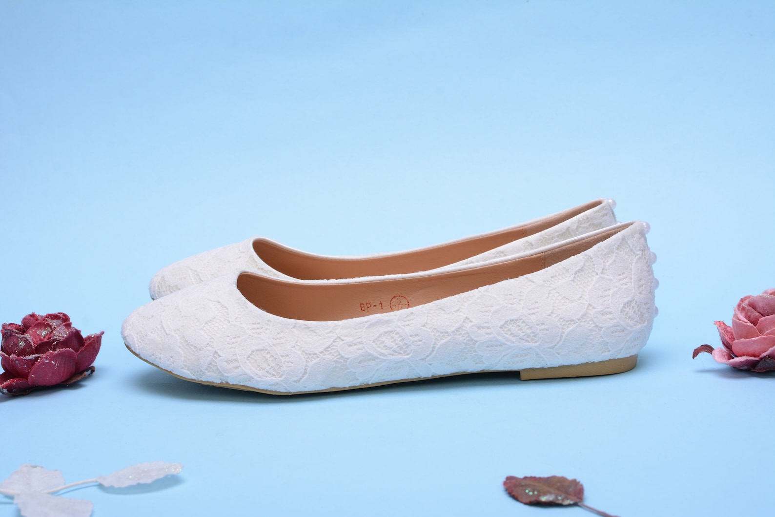 2018 Women S Wedding Shoes White Flat Heel Flower Decoration Sweet Wedding Shoes Flats White