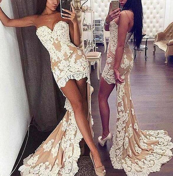 Spaghetti Straps Lace Beaded Short Prom Dress Homecoming Dresses Wedding Short Evening Dresses